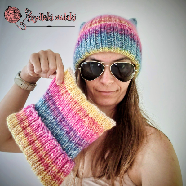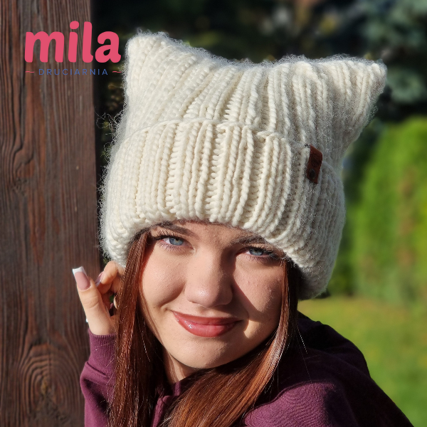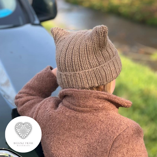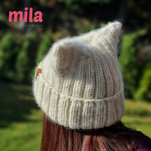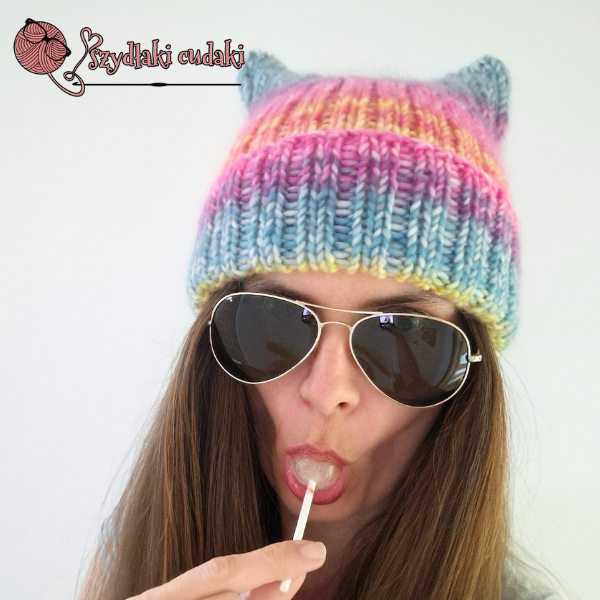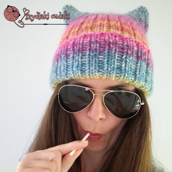 Kiedy wiosną wydziergałam czapkę z kocimi uszami dla bratanicy męża, która kocha koty ♥ i pokazałam Wam ją na IG, nie spodziewała się takiej reakcji. Dosłownie pokochałyście ten model od pierwszego wejrzenia. Nie był doskonały, więc wtedy jeszcze nie mogłam obiecać Wam wzoru. Właściwie w ogóle bałam się go obiecać kiedykolwiek, bo - o ile samo projektowanie "w głowie" i dzierganie tego, co podpowiada mi wyobraźnia, przychodzi mi z lekkością i łatwością, to - spisywanie tych pomysłów nie jest moją bajką. No ok -nie było ;) Bo po Waszych namowach postanowiłam w końcu ten wzór napisać. Pierwszy drutowy w swojej ponad 30-letniej dziewiarskiej "karierze", taki od A do Z, by był dla Was zrozumiały i nadawał się do publikacji.