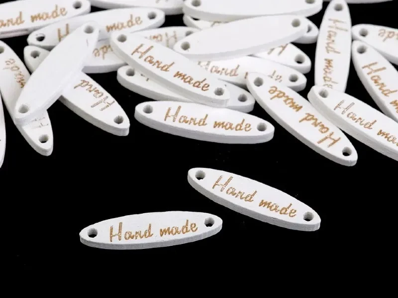 Etykieta "Hand made" drewno 6x27mm, biały
