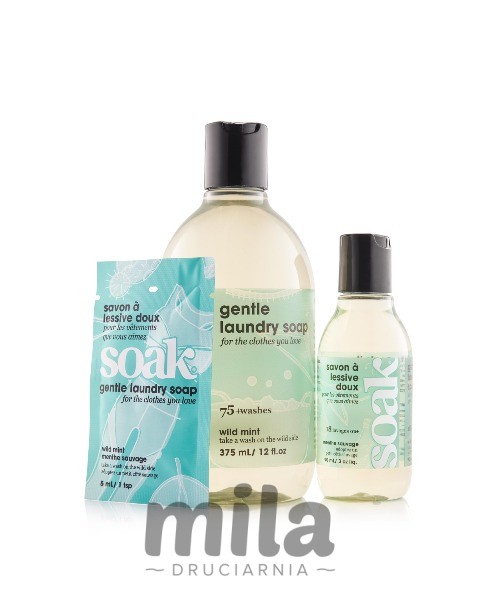 Ekologiczny płyn do prania kanadyjskiej firmy Soak, zapach wild mint - świeży zapach mięty, pikantnej gałki muszkatołowej i cytrusów.