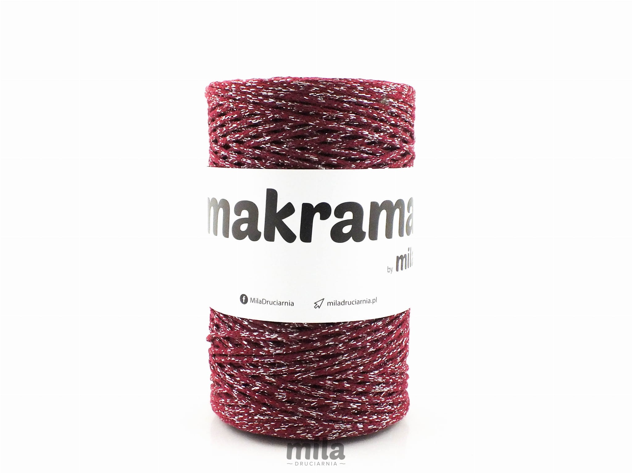 Sznurek MAKRAMA Glitter by Mila 2 mm, 200m 102 srebrne bordo