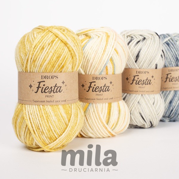 DROPS Fiesta jest wytrzymałą włóczką w żywych kolorach. Składa się z 4 nitek z powłoką superwash, jest łatwa w utrzymaniu, ubrania z niej mogą być prane w pralce. Jest bardzo ciepła i miękka w dotyku i nadaje się nie tylko na skarpetki, wypróbuj ją również na swetry, szaliki, czapki czy ciepłe koce!