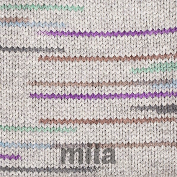 Próbki wykonane w karcie kolorów zostały wykonane na niewielkiej liczbie oczek, jak na robótkę wielkości skarpety. Przy większych projektach wzór będzie wyglądał inaczej.
