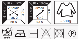 Zalecane druty: 2,5 mm