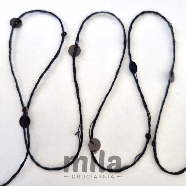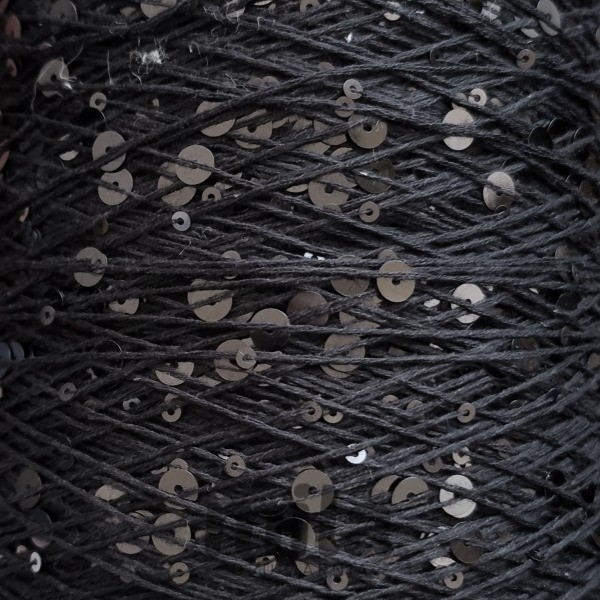 Cekiny są równomiernie rozmieszczone na bawełnianej przędzy, mają rozmiar 3 i 6 mm, przędza bawełniana ma lekki skręt, cekiny lekko przesuwają się po nici, dzięki czemu możesz kontrolować w czasie dziergania, czy będą na lewej, czy prawej stronie dzianiny.