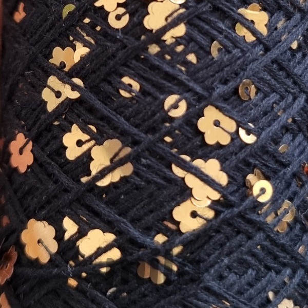 Cekiny są równomiernie rozmieszczone na bawełnianej przędzy, mają rozmiar 3 i 6 mm, przędza bawełniana ma lekki skręt, cekiny lekko przesuwają się po nici, dzięki czemu możesz kontrolować w czasie dziergania, czy będą na lewej, czy prawej stronie dzianiny.