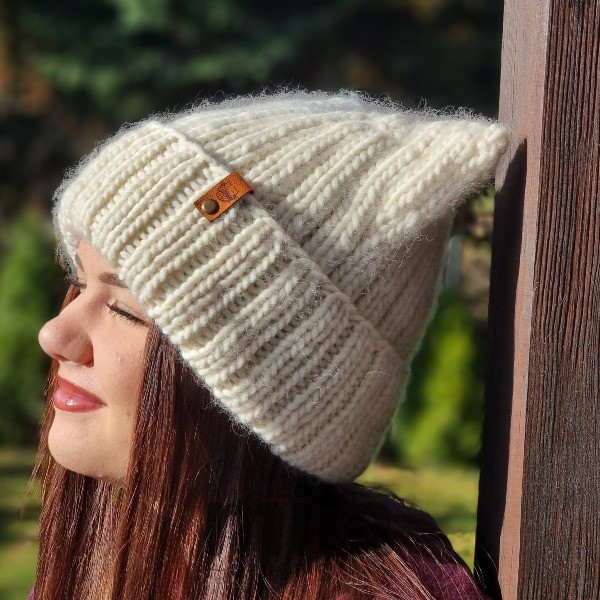 CZAPKA KREMOWA NA ZDJĘCIACH zrobiona została z włóczki FINE HIGHLAND, kolor 100, WERSJA 1.