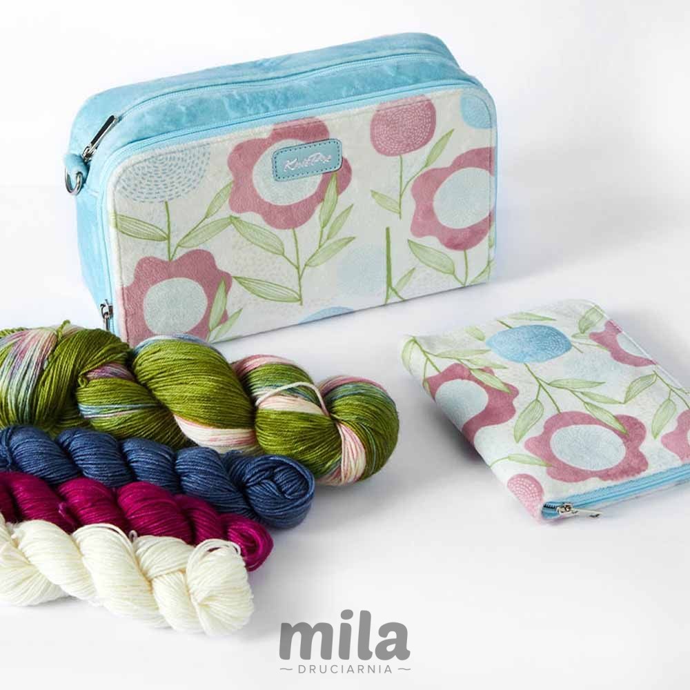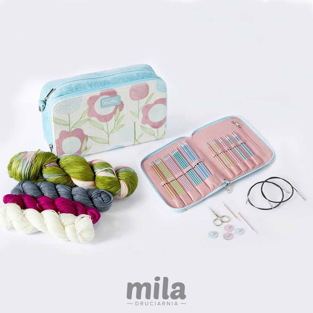- 1 małe etui na druty oraz kieszonką na zamek, w której mieszczą się akcesoria