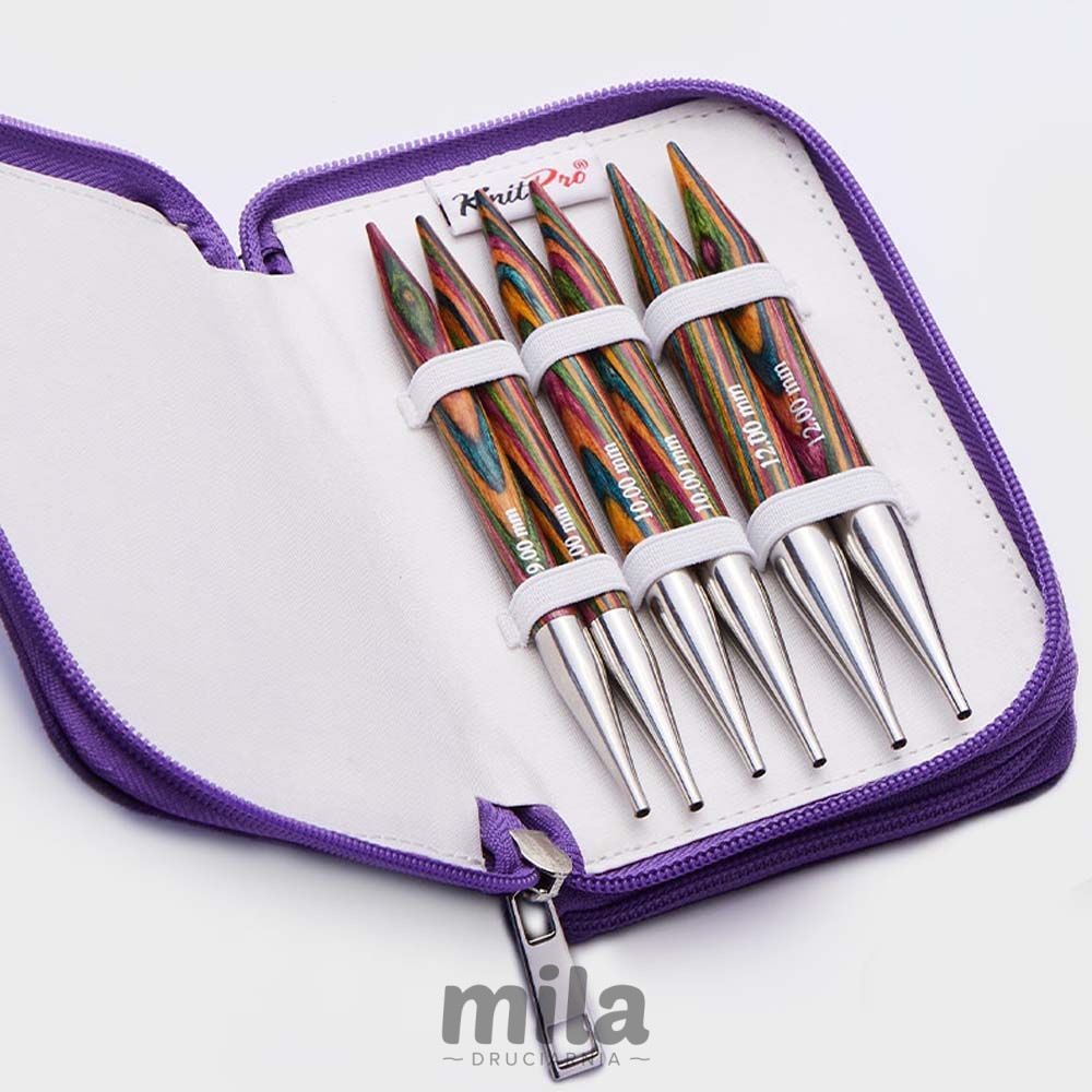 KnitPro Symfonie Chunky to zestaw drutów wymiennych, wykonanych z pięknego, wyjątkowo barwionego drewna, wielokrotnie polerowane.