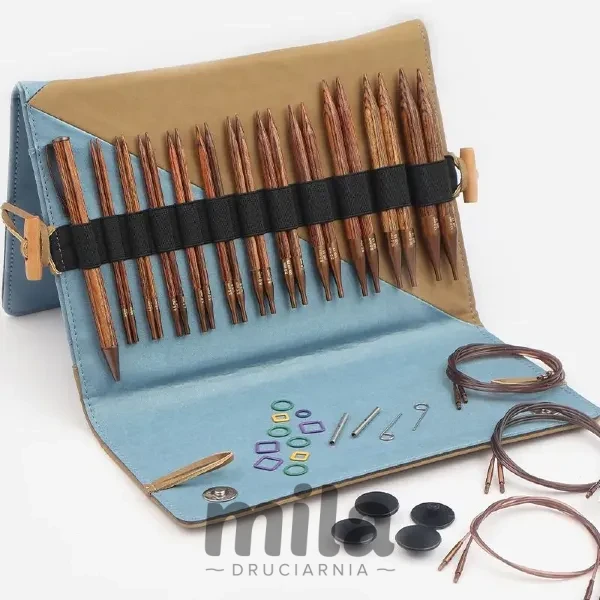 KnitPro Ginger Deluxe to zestaw drutów wymiennych, wykonanych z pięknego, wyjątkowo barwionego, laminowanego drewna.