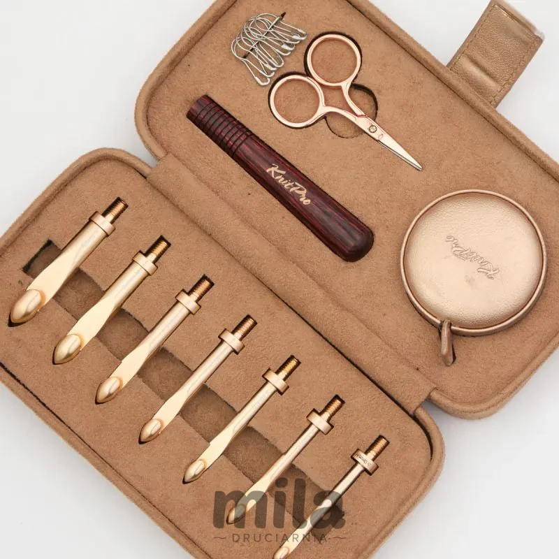 Wymienne końcówki szydełkowe KnitPro Oasis są wykonane z metalu i mają piękną błyszczącą powierzchnię w kolorze różowego złota. Idealnie gładkie wykończenie gwarantuje, płynność pracy.